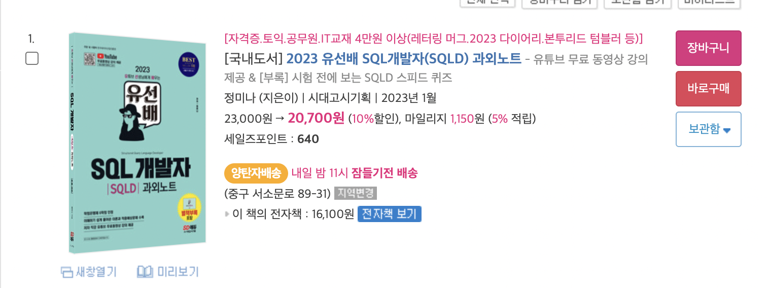 갠적으로 학부때 DB수업듣고 바로 치는게 제일 좋은것 같다. 진짜 후회된다.. 그때는 이런 자격증 있는지도 몰랐음 ㅠㅋㅋㅋㅋㅋ