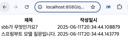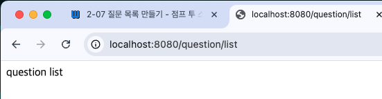 @GetMapping("/question/list") // localhost:8080/question/list로 접속하면