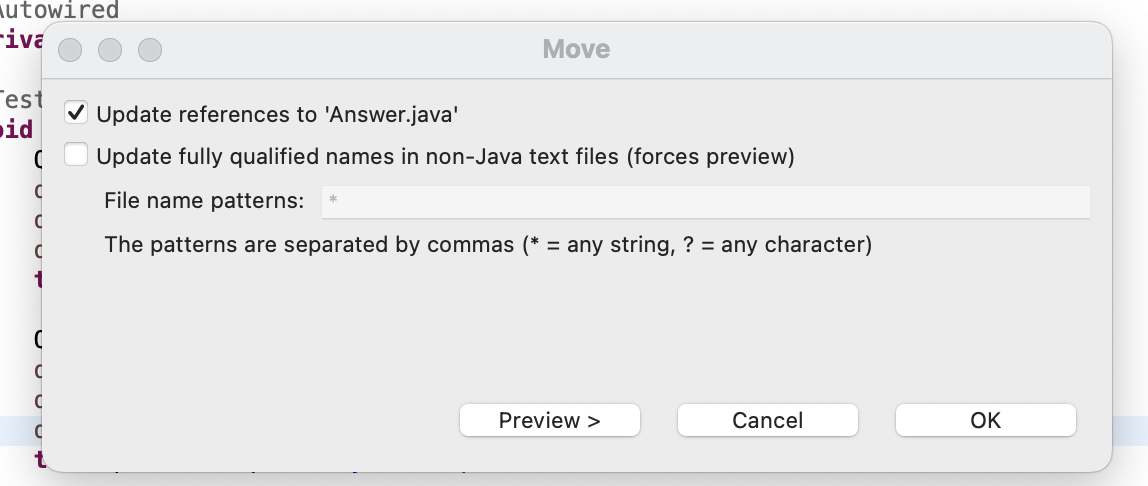 - Answer.java에 추가해주기 (import 위치가 바뀌니까)
