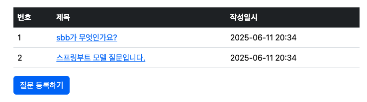 >> localhost:8080으로 접속하면 localhost:8080/question/list로 주소가 바뀜(맵핑)